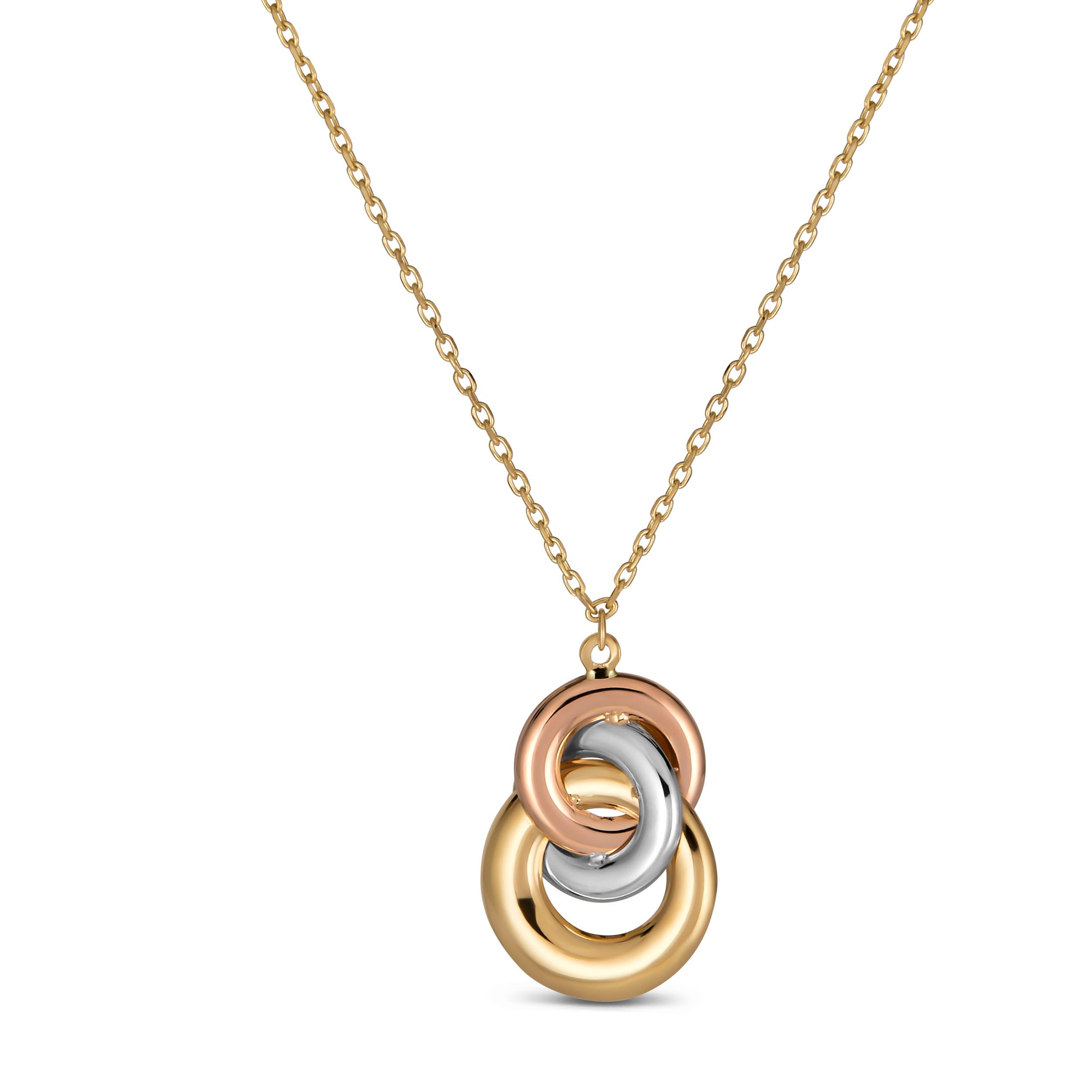 |  | 14k tricolor gold triple crossover ring pendant adjustable length necklace | Style # | N3RNGTC-1618TD | Avg Weight | 2.35 gram(s) | Karat | 14 Karat | Length | 18 inches | Quantity | 20 pcs | Location | 43 | Price | $1,099.00 | |