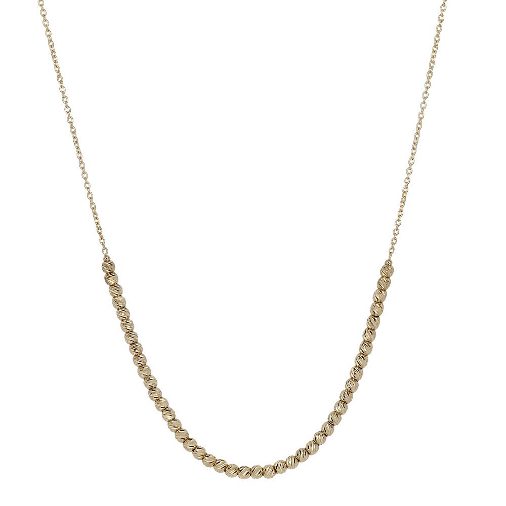 |  | 14k yellow gold 2.5mm diamond cut bead adjustable length necklace | Style # | BDC853-168TD | Avg Weight | 3.5 gram(s) | Karat | 14 Karat | Length | 18 inches | Quantity | 9 pcs | Location | 62 | Price | $1,284.00 | |