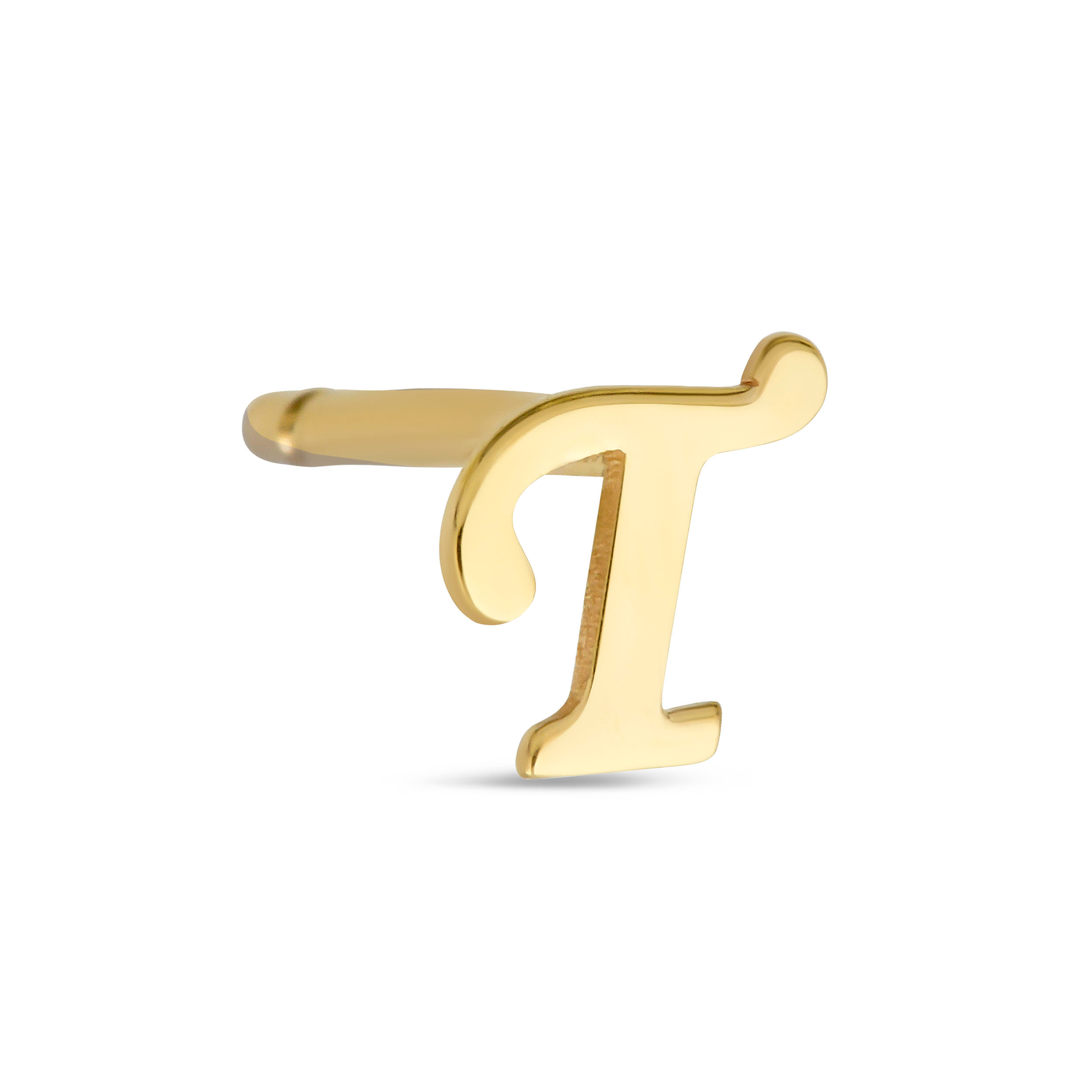 |  | 14k yellow gold script initial single stud earring - (t) | Style # | EINL2-T | Avg Weight | 0.35 gram(s) | Karat | 14 Karat | Length | | Quantity | 4 pcs | Location | A0076 | Price | $142.00 | |
