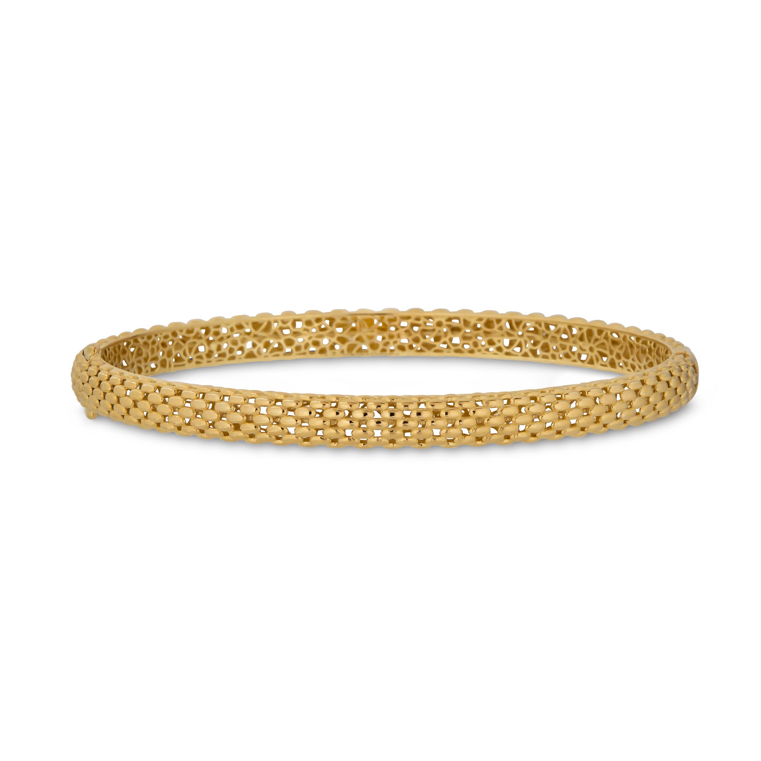 |  | 14k yellow gold 6mm mesh hinge bangle | Style # | OBBNG49 | Avg Weight | 13.5 gram(s) | Karat | 14 Karat | Length | | Quantity | 10 pcs | Location | 232 | Price | $3,735.00 | |