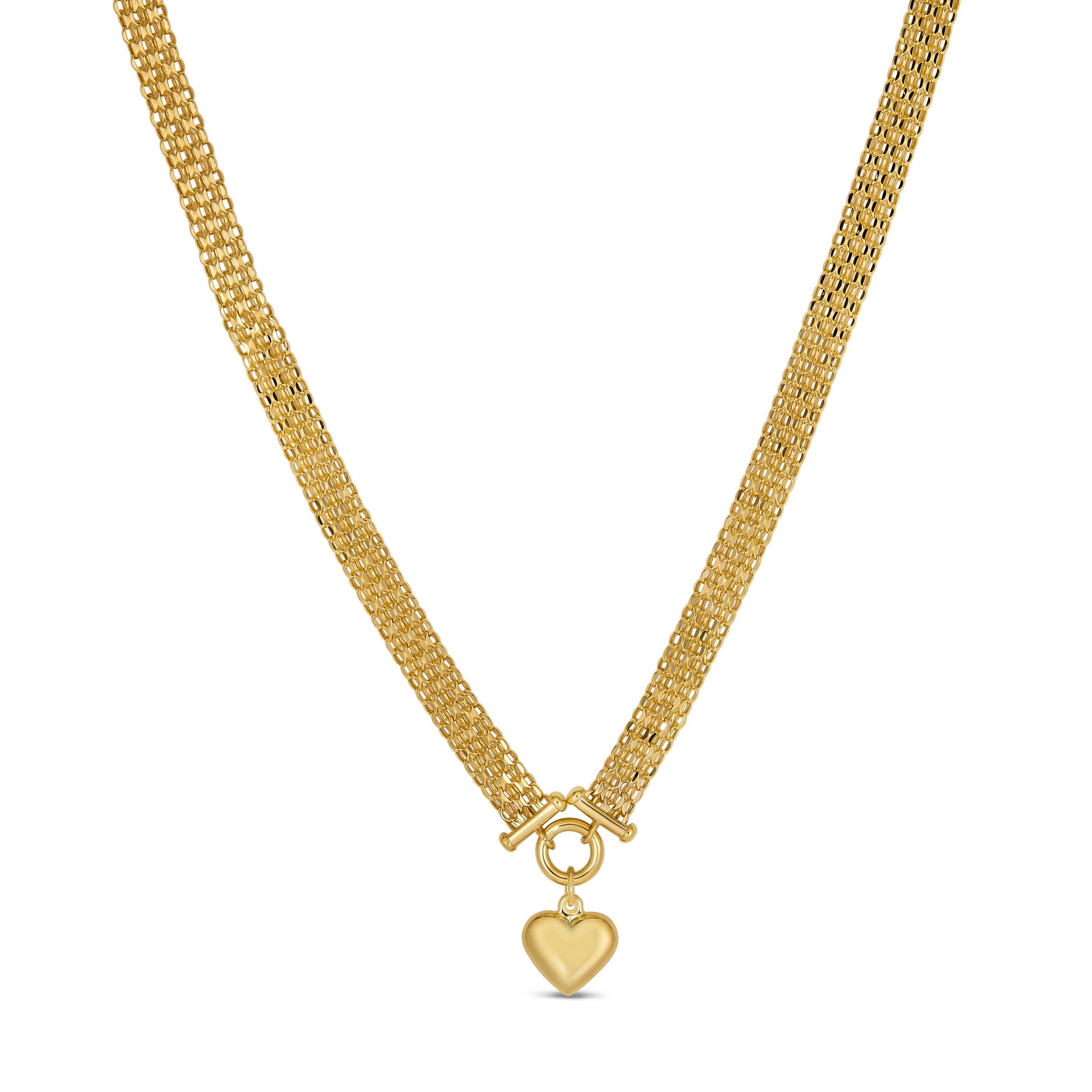 |  | 14k yellow gold 5.5mm diamond cut bismark puffed heart necklace | Style # | OBHRTBISDC-18 | Avg Weight | 6.45 gram(s) | Karat | 14 Karat | Length | 18 inches | Quantity | 12 pcs | Location | 14AUN 49 | Price | $1,817.00 | |