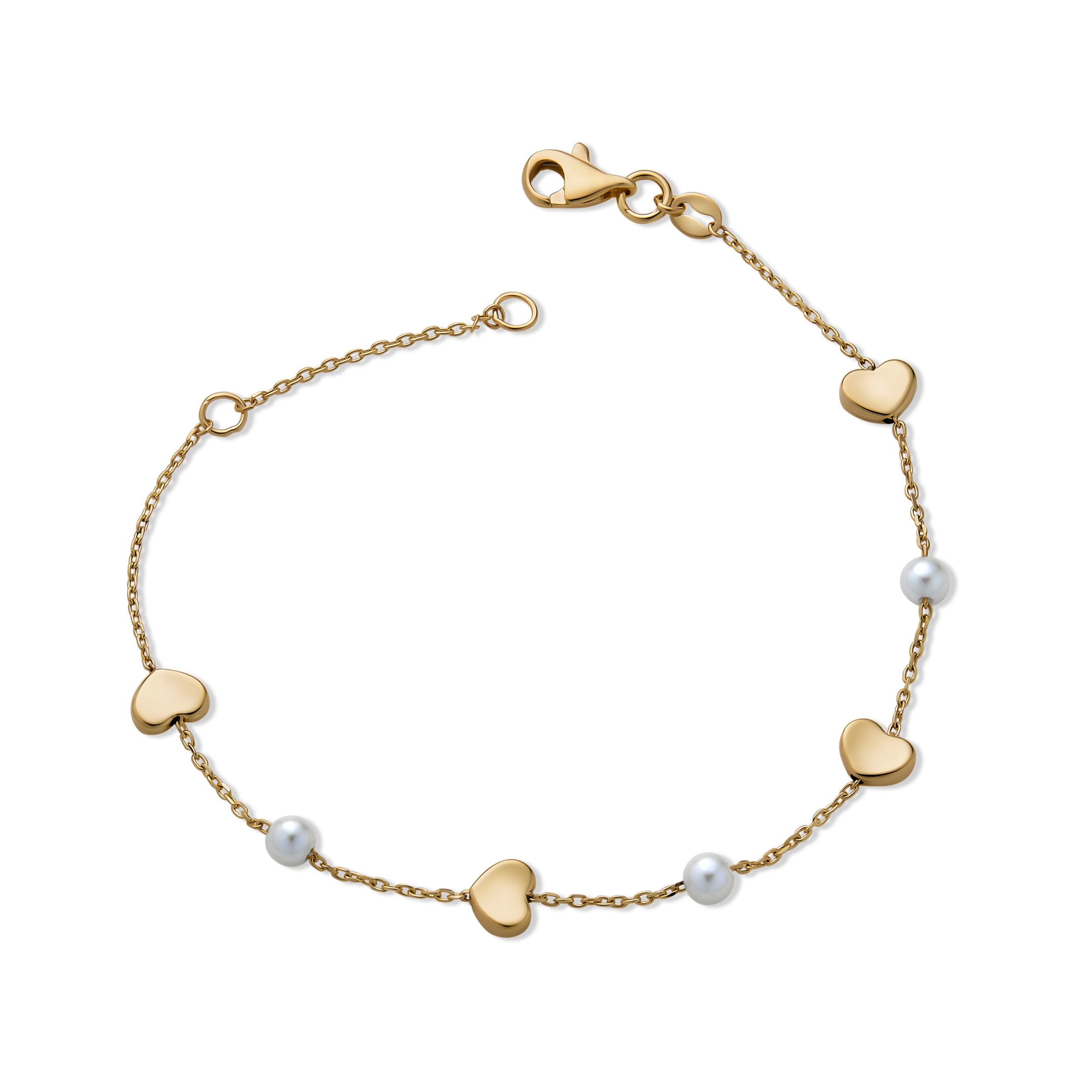 |  | 14k yellow gold pearl and heart station adjustable length bracelet | Style # | PRLHRT-6575TD | Avg Weight | | Karat | 14 Karat | Length | 7.5 inches | Quantity | 10 pcs | Location | 78 | Price | $876.00 | |