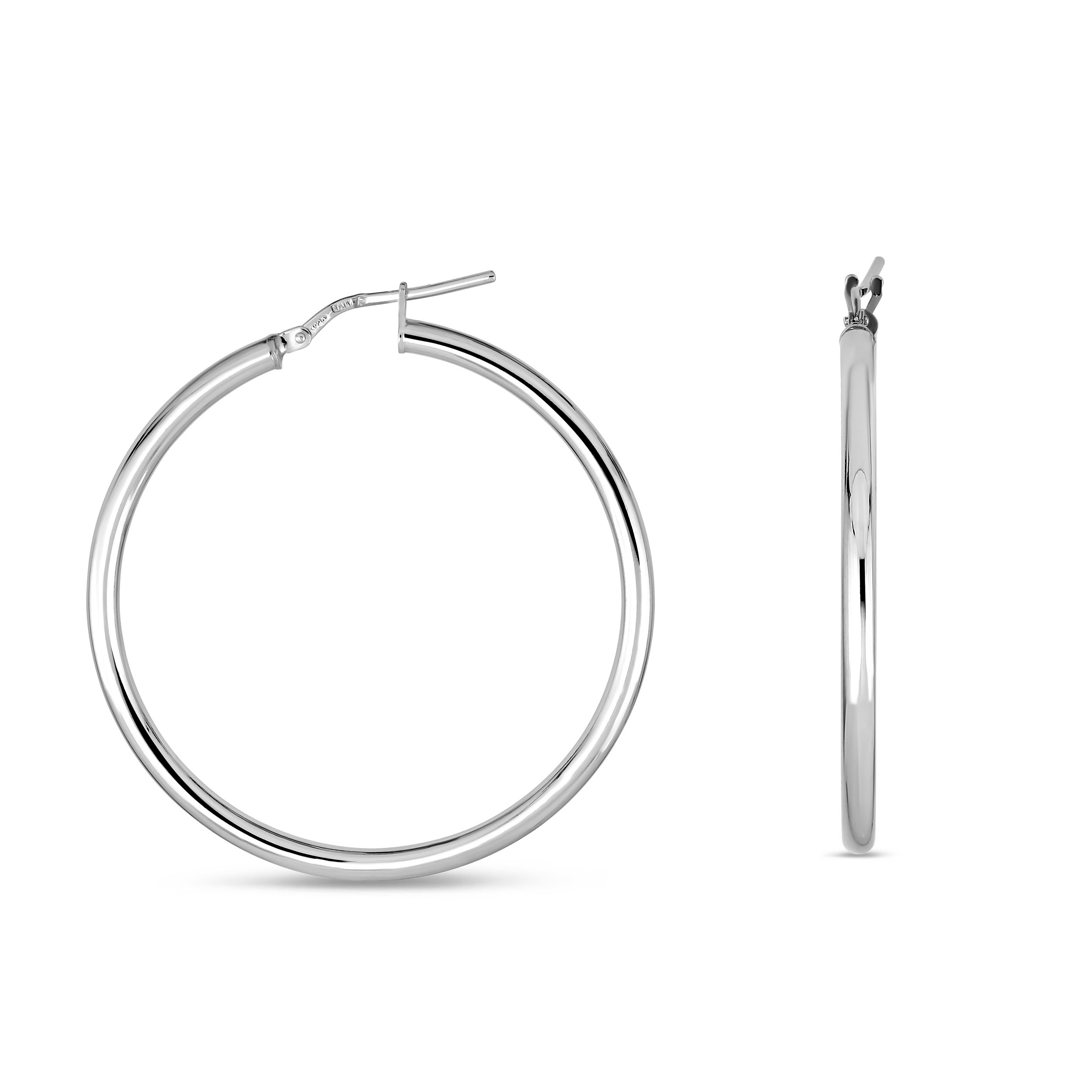 rhodium plated sterling silver 2.5x25mm polished hoop earrings