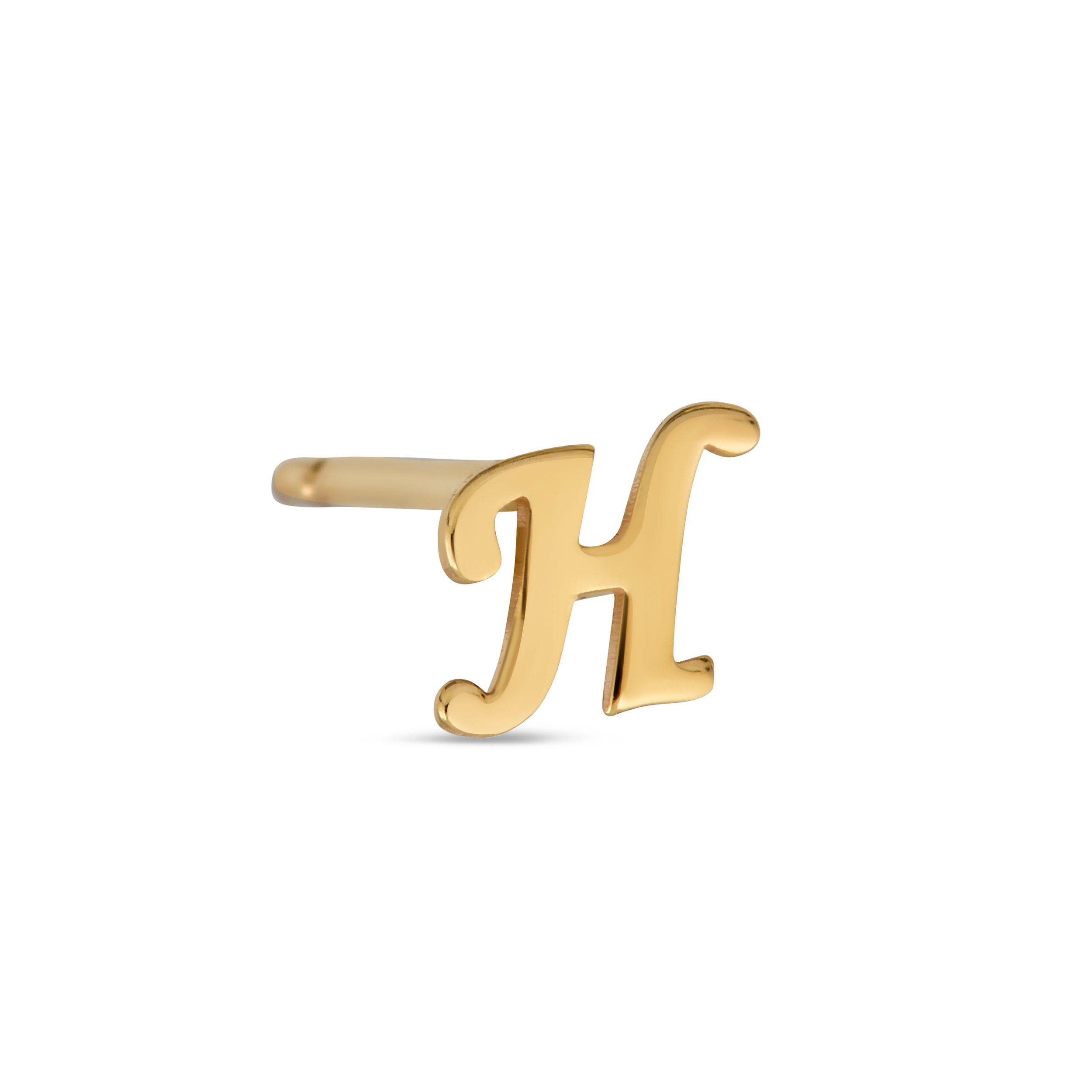 |  | 14k yellow gold script initial single stud earring - (h) | Style # | EINL2-H | Avg Weight | 0.35 gram(s) | Karat | 14 Karat | Length | | Quantity | 4 pcs | Location | A0076 | Price | $142.00 | |