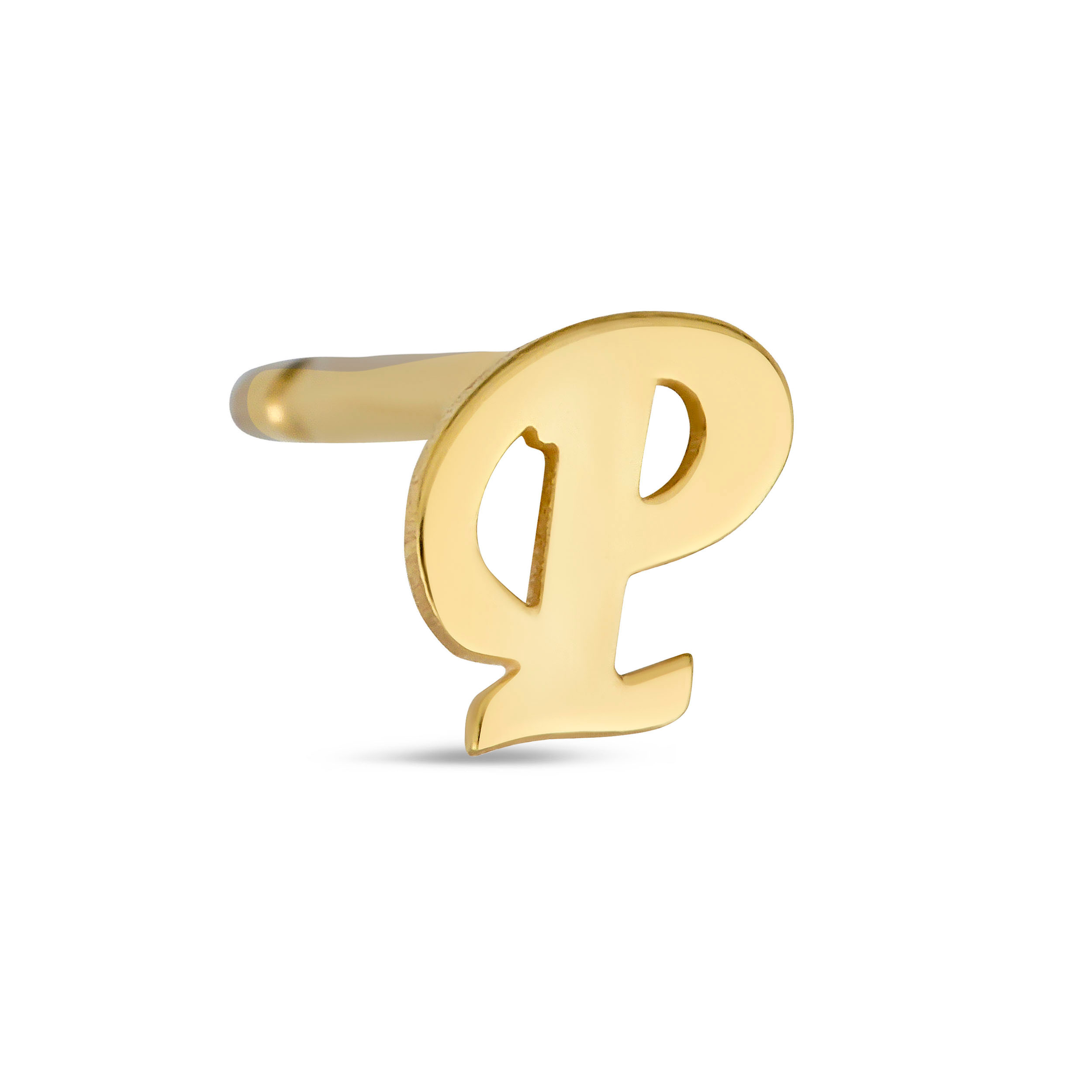 |  | 14k yellow gold script initial single stud earring - (p) | Style # | EINL2-P | Avg Weight | 0.35 gram(s) | Karat | 14 Karat | Length | | Quantity | 4 pcs | Location | A0076 | Price | $142.00 | |