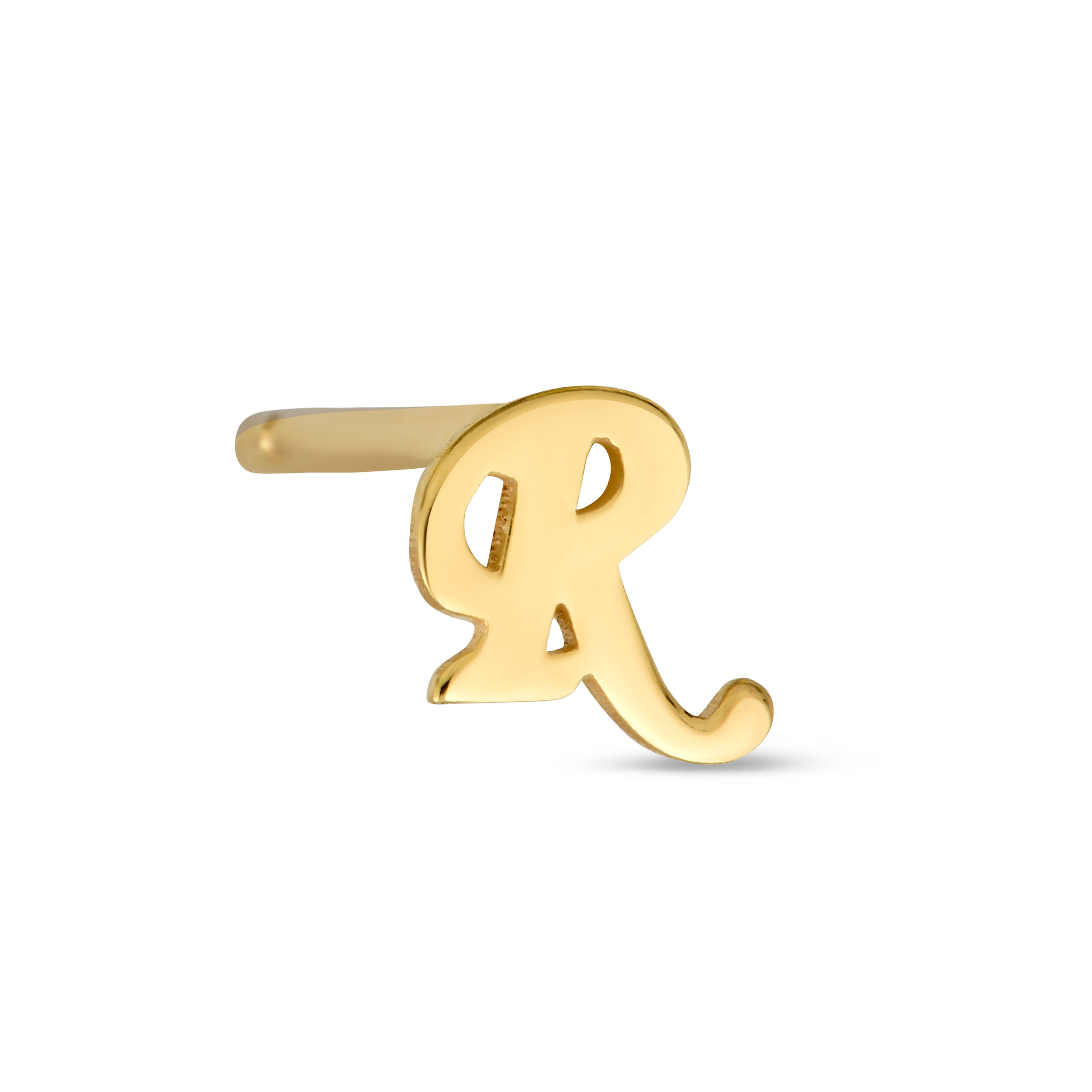 |  | 14k yellow gold script initial single stud earring - ( r ) | Style # | EINL2-R | Avg Weight | 0.35 gram(s) | Karat | 14 Karat | Length | | Quantity | 4 pcs | Location | A0076 | Price | $142.00 | |